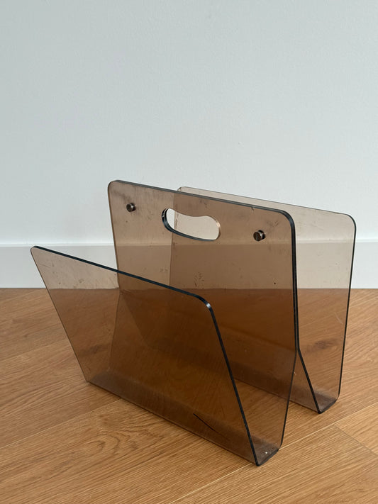 Smoked Acrylic Magazine Holder — Modernist Design (c. 1970s)