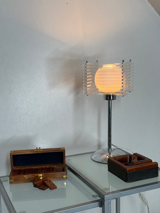 Acrylic 80’s Table Lamp Chromed Base & Spherical Diffuser