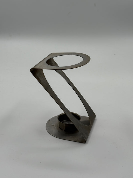 Sculptural Steel Candle Holder Abstract Modernist Form (c. 1970s)