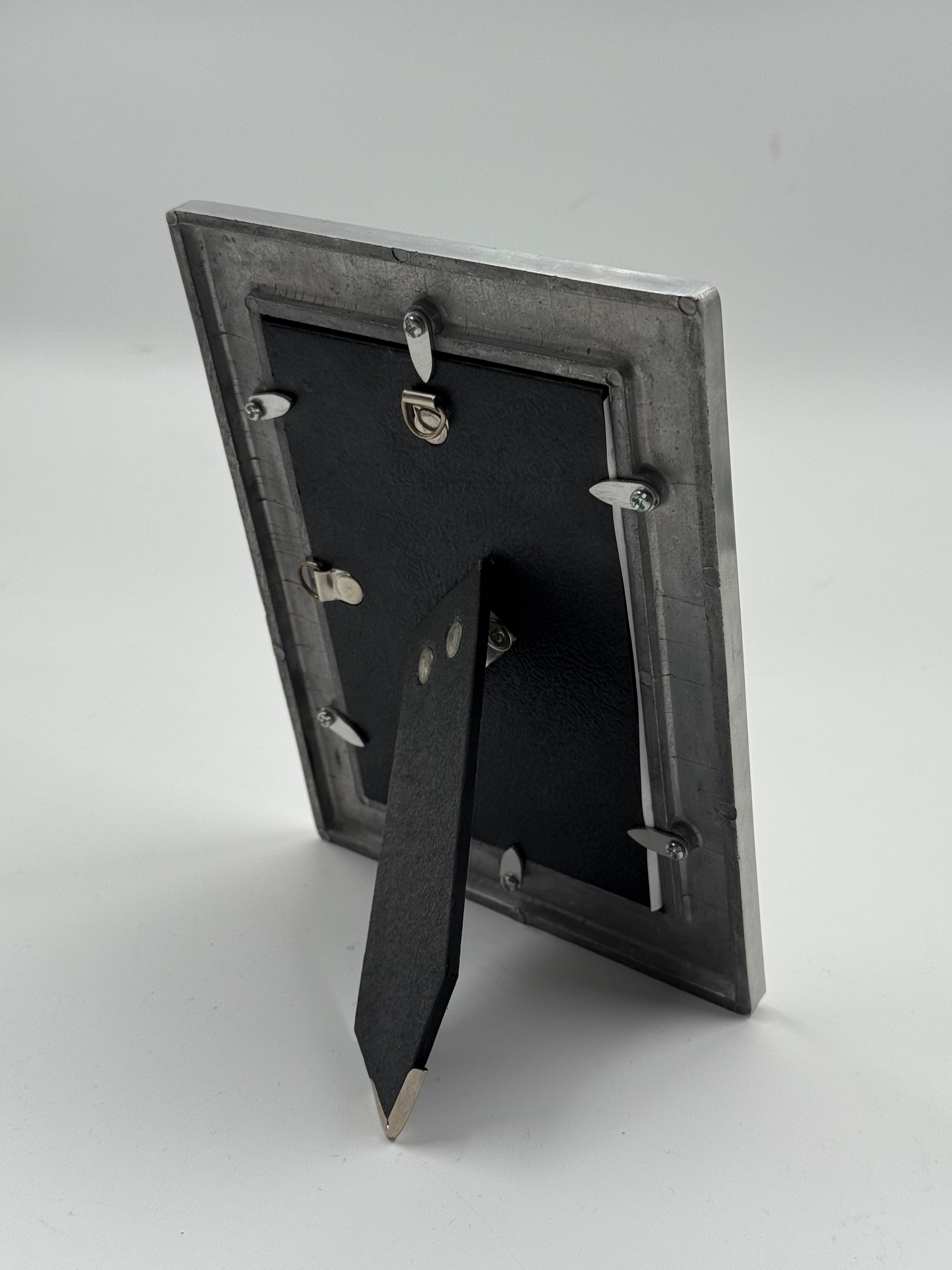 Its clean, geometric form and understated finish reflect the modernist design language of the 1970s–1980s. The weight and simplicity of the frame give it a sculptural, architectural presence, allowing it to stand beautifully on its own even without a photograph.