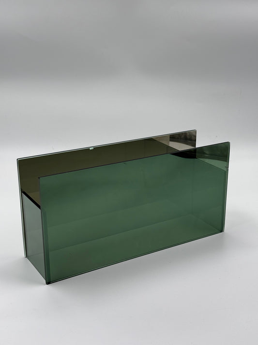 Smoked Green Glass Magazine Rack Minimalist Transparency