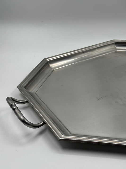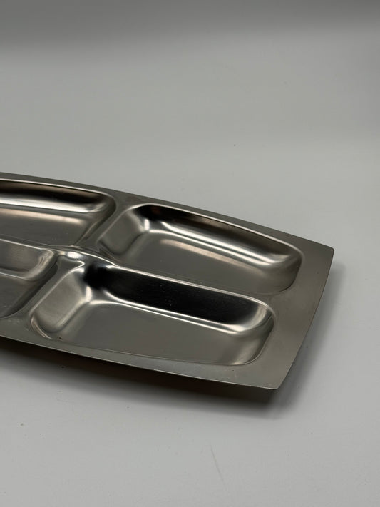Vintage Brutalist Stainless Steel Tray Sculptural Table Decor
