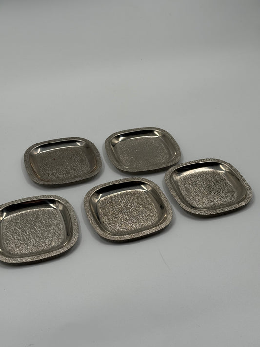Set of 5 Vintage Stainless Steel Drink Coasters