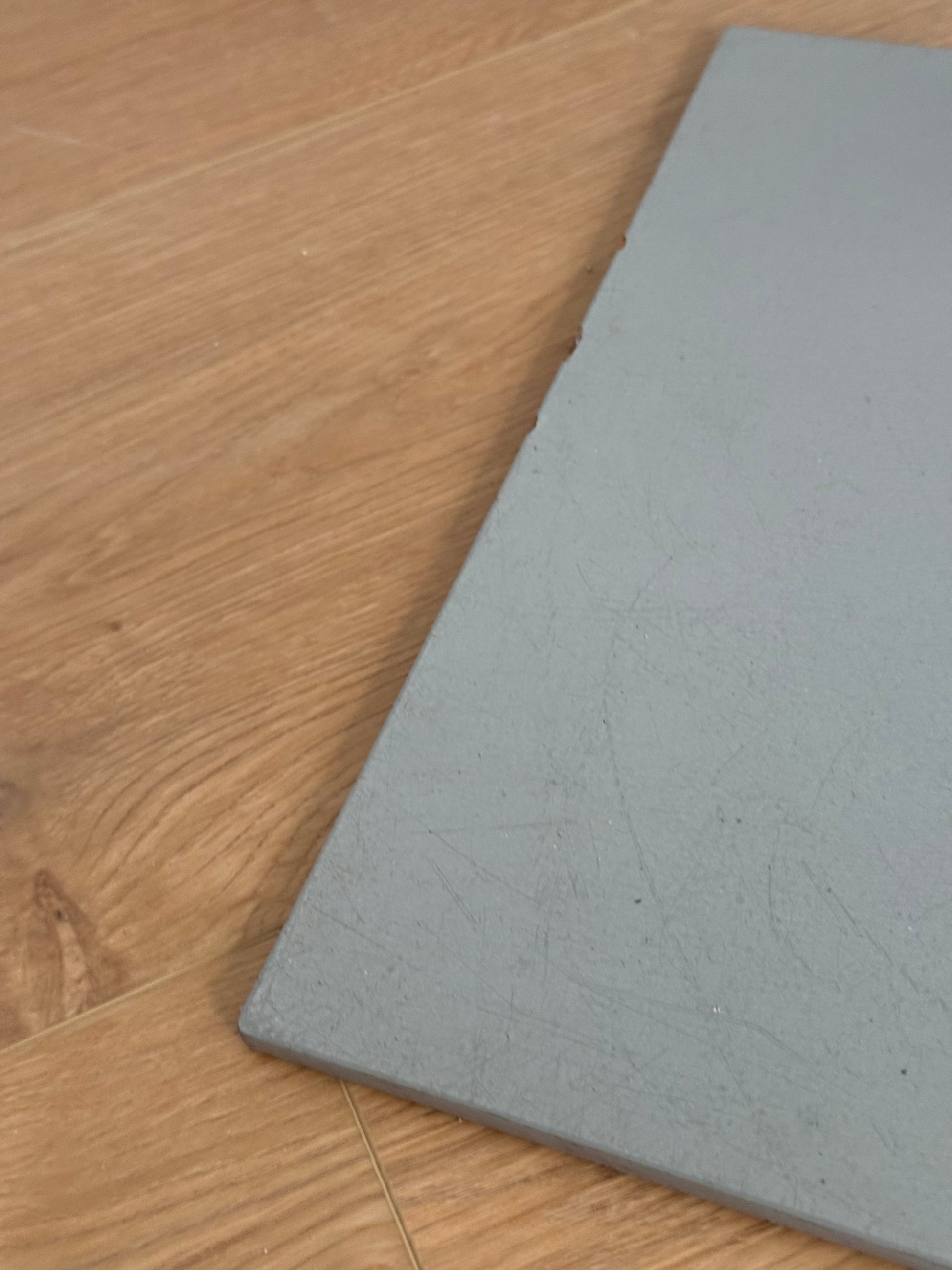 A minimalist side table designed by Lourens Fisher, featuring a sculptural steel base and two floating glass shelves.